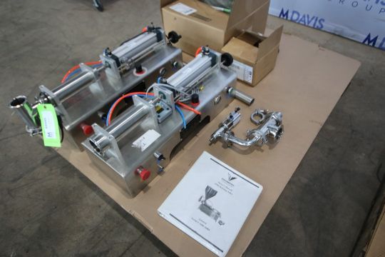 (2) NEW Pneumatic Type Benchtop Single Head Filling Machine, M/N V1WTD, Filling Range 50-500 ML (g), Bodies Only, with Manual & Box of Parts (NOTE: Missing (2) Infeed Funnels (INV#84995)(Located @ the MDG Showroom 2.0 in Monroeville, PA)(Handling, Loading & Site Management Fee: $100.00 USD)