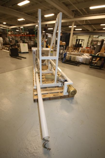 Hapman Powder Auger Conveyor System, Includes38" W x 38" L x 41" H S/S Hopper SN X 1410700, with 5 hp / 1750 rpm Drive Motor, 208-230/460V, 14' L S/S Screw Auger with 4" Teflon Sleeve, Mounted on 8' L x 39" W Frame System with Casters (INV#89057) (Located @ the MDG Showroom in Pgh., PA) (Skidding, Rigging, Loading & Site Management Fee: $200 USD)