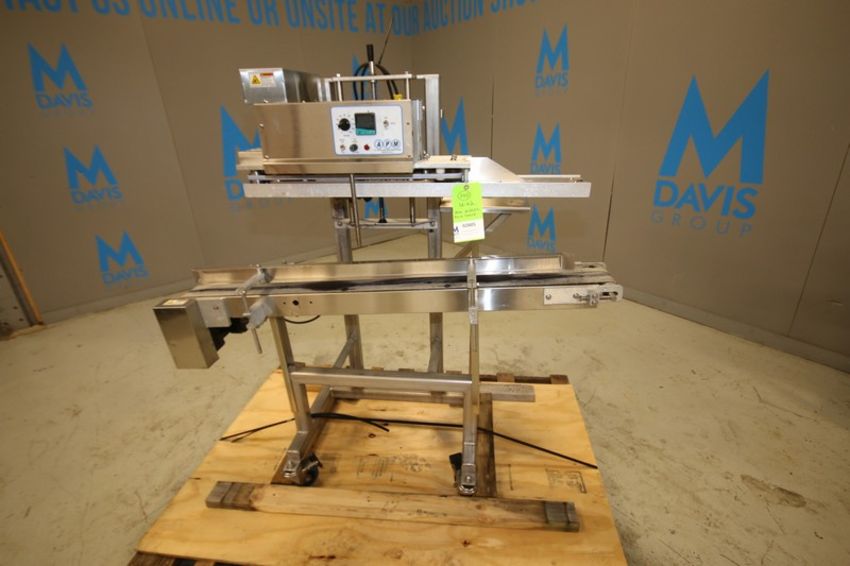 APM Vertical Band Sealer, Model VCBSDM 3/8 TX 6x5, SN 4155DM, with 55" L Power Conveyor with 6" W Belt, Portable S/S Frame, 110V, Skidded(INV#92805) (Located @ the MDG Auction Showroom in Pgh., PA)(Handling, Loading & Site Management Fee: $75)