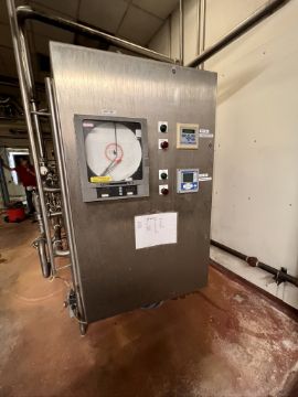THREE TANK CIP, CENTRIFUGAL PUMP, SHELL AND TUBE HEAT EXCHANGER, FLOW METER, ASSOCIATED AIR VALVES, CONTROL PANEL WITH ALLEN BRADLEY MICROLOGIX PLC (Handling, Loading & Site Management Fee: $250.00 USD)