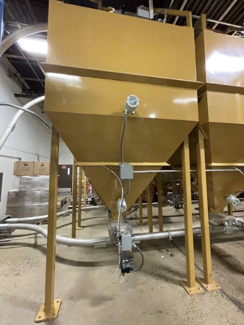 3,200 LB DEGAS COFFEE SILOS WITH NITROGEN DEGASSING, SERIES 3000, 160 FT3 USUABLE CAPACITY, 6’ X 6’ SQUARE, HIGH/MID/LOW LEVEL SENSOR PORTS, TOP-MOUNT NITROGEN VALVE PORTS, 8” PNEUMATIC SLIDE GATE, BIN VIBRATOR (2019 MFG)&(2019 COST $40,000)(Loading, Handling & Site Management Fee: $1500.00)
