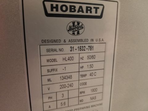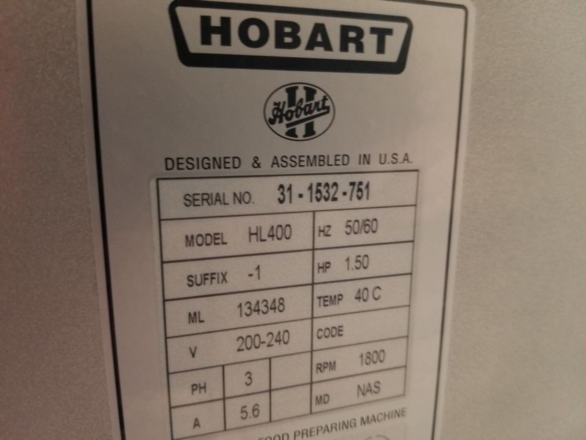 Hobart Legacy 40 qt. Mixer, Model HL400, S/N 31-1532-761, Volt 200 - 240, 3 Phase (Loading Fee $275) (Located Fort Worth, TX)
