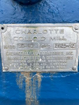 Charlotte Colloid Mill, Model SD-40, S/N 2625-R2 with 30 hp, 220/440 V, 3600 RPM Motor (Located in Newark, NJ)