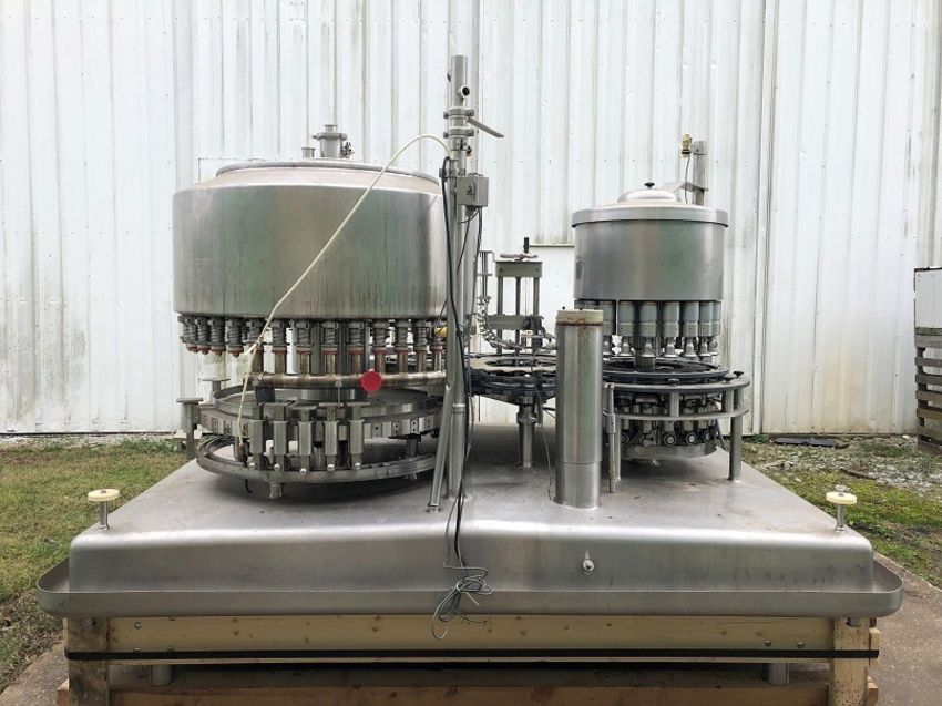Federal 40-Valve LIGHTWEIGHT LEFT HAND FILLER, Model ESWSS 40.20, S/N 2252ESWSS 5/40.20 GL844, J-Series, Spring Style Valves with Removable Sleeves, CIP Rings, PST Level Controller, Tall Bowl Design, Screw Infeed, 3-Pin Bottle Handling Equipment for 14 oz. Containers, 20-Head Capping Turret with Gear Driven Cappers for Screw Caps, Contains Velocity Cap Hopper, Orienter and Cap Chute, Cable Emergency Shut Off, Aprox. 124”W X 93”L X 108” O.A.H. (Rigging Fee $3,000) (Located Hartsville, TN)