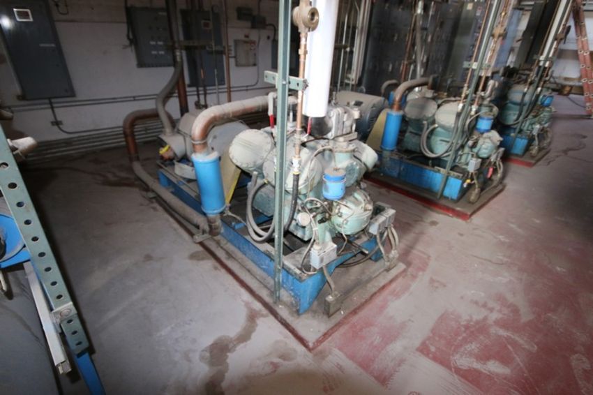COMPLETE GLYCOL REFRIGERATION SYSTEM: Includes--(1) Genuine Carlyle 125 hp 8-Piston Freon Compressor, M/N 5H80-A219, with Lincoln 1770 RPM Motor, 230/460 Volts, 3 Phase, with Furnas Soft Starter; (1) Genuine Carlyle 125 hp 8-Piston Freon Compressor, M/N 5H80-A219, with Lincoln 1782 RPM Motor, 230/460 Volts, 3 Phase, with Furnas Soft Starter; (1) Genuine Carlyle 125 hp 8-Piston Freon Compressor, M/N 5H80-A219, with Lincoln 1770 RPM Motor, 230/460 Volts, 3 Phase, with Furnas Soft Starter; (1) Vertical Refrigeration Vales Freon Accumulation System, NAT'L BD: #2197, MAWP 50 PSI @ 300 F, -20 F @ 150 PSI; (1) Horizontal RSD Freon Receiver Tank, Previously Received R407F; BAC Evaporator Unit, M/N VLG-225A, S/N 78-8914M, Belt No. 4-B90; (1) 2011 Frick 3-Fan Evaporator, S/N 300/620116.0003, 460 Volts, 3 Phase, Pro. #: 507281 (1) 2011 Frick 3-Fan Evaporator, 460 Volts, 3 Phase (1) 2011 Frick3-Fan Evaporator, 460 Volts, 3 Phase, (Handling, Loading, & Site Management Fee: TBA USD) (LOCATED IN STOCKTON, CA)