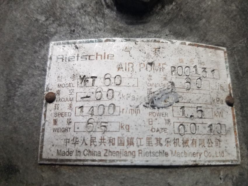 Rietschie VFT Vacuum Pump,2.2 hp, S/N P00131, Volt 220, 3 Phase (Loading Fee $100) (Located Fort Worth, TX)