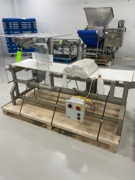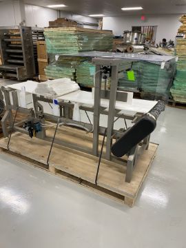 Bizerba Straight Section of Metal Detector Conveyor with Ejector, Aprox. 7 ft. L, Mounted on S/S Frame (NOTE: Does Not Include Metal Detector)(LOCATED IN BELTSVILLE, MD) (RIGGING, LOADING, & SITE MANAGEMENT FEE: $100.00 USD)