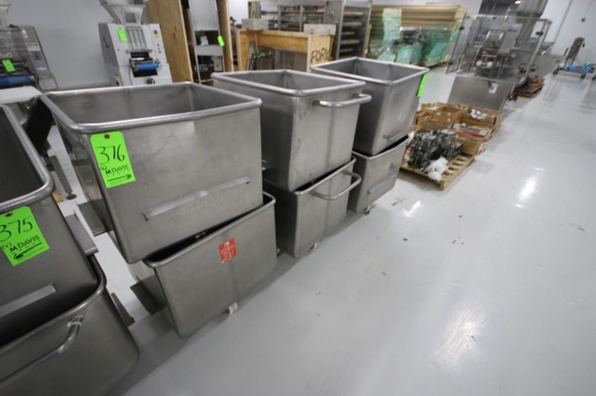 (6) S/S Portable Totes, Internal Dims.: Aprox. 27” L x 23” W x 14” Deep (LOCATED IN BELTSVILLE, MD) (RIGGING, LOADING, & SITE MANAGEMENT FEE: $50.00 USD)