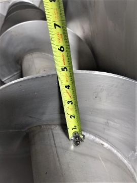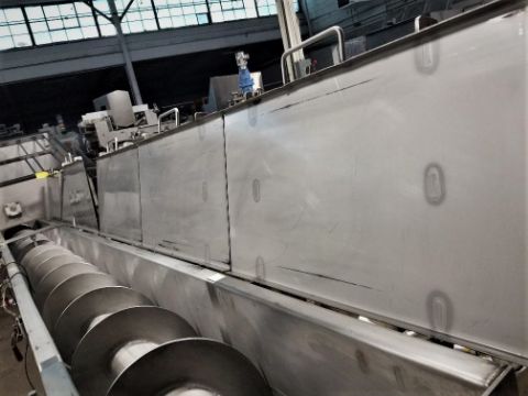Mepaco S/S Sanitary Incline Screw/Auger Conveyor, Model 185, S/N 6332-1 with16" Diameter Hopper, S/S Cover with Clamps, 16" Diameter Screw/Auger, Length of Scre/Auger is 293" (24.4 ft.); Agitated Hopper is Powered by 2 hp Drive, Hopper Dimensions Aprox. 72" W x 68" L x 64" Deep, Hopper is estimated to Hold 4,000 lbs. of Product, Screw/Auger is driven by a 10 hp drive, Mfg. 2016; Discharge Chute Measures 22" L x 16" W; Overall Length of the Unit is 27 ft., Overall Width of the Unit is 80". This Unit can Discharge at whatever angle height is determined. There are no support legs or the screw/auger and will need to be provided by purchaser. (Loading Fee $400) (THIS SYSTEM SHOULD SHIP VIA FLATBED - PLEASE INQUIRE FOR SHIPPING RATES) (Located Hortonville, WI)