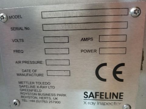 Mettler Toledo Safeline POWERCHECK PLUS X-Ray System, S/N 3410R20V1860, Mfg. May 2011, Single Phase, 220 Volt, 15 Amps -- Unit last uesd in the food industry at Fair Oaks Farms doing fresh meat. System fires up and runs for several minutes then shuts down. We are not experts on this type of equipment and have no idea why it runs fine and then shuts down. (Crating and Loading Fee $650) (Located Hortonville, WI)