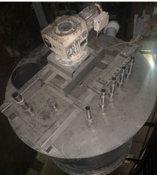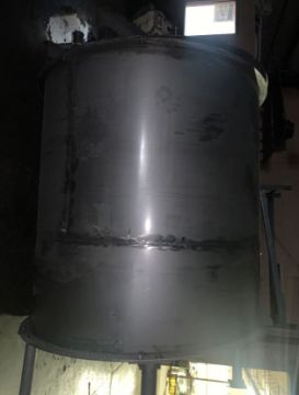 1100 Gallon (approx.) Stainless Steel Single Wall Tank-72" diameter, 72" straight side, top entering Scrape Surface Mixer with motor and gear box installed above. Flat top and bottom with various openings on top and 3" bottom outlet (LOCATED IN IOWA, Free