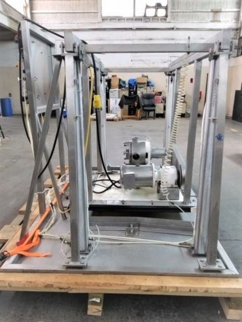 Sine Tote Unloading System, Model TPP-T-0401 with Sine MR135 Pump, S/N 106330704 (2004), Unit last used in the food industry, Tote Pump Platform Raises Up to Allow Tote Unter it, Pump Platform then decends into tote to Pump Product Out, All S/S Sanitary Design, Extra Pump Parts will be included in the sale. Specifications Max. Flow Rate 138.7 gpm, 31,500 lph, Max. Working Pressure 150 psi 10 bar, Operation Temperature Range 250 Degree F (130 Degree C) (Crating and Loading Fee $600) (Located Hortonville, W)