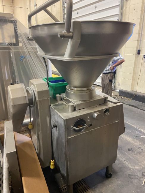 Handtmann S/S Vacuum Stuffer, M/N VF 200, 220/440 Volts, 3 Phase, with S/S Side Tote Dumping Arm (LOCATED IN FT. ATKINSON, WI)(RIGGING, LOADING, & SITE MANAGEMENT FEE: $500.00 USD)
