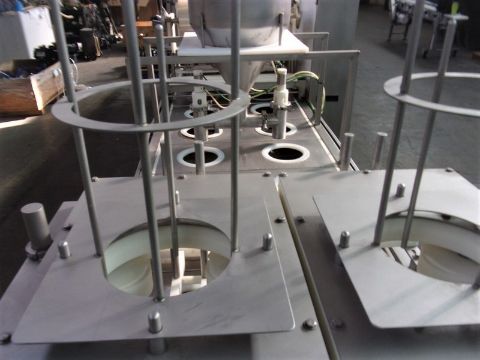 PMR (Packaging Machinery Resources) Dual Lane Continuous Container Filler, Sealer, Lidder, Model 1300, S/N 20070207, with All S/N Sanitary System, 440 Volt, Allen Bradley Micrologic Controller, Allen Bradley PowerFlex Speed Controller, Allen Bradley Panelview 300 Control Pad, Unit is on Casters, System is rated at Aprox. 30 Containers Per Minute, Current Container Diameter is Aprox. 6", -- This System Denests the Containers, Fills the Containers, Puts a Protective Seal on the Container and then Lids. (NOTE: This System will need to Ship Via Flatbed so please inquire for shipping costs) (Located Hortonville, WI)
