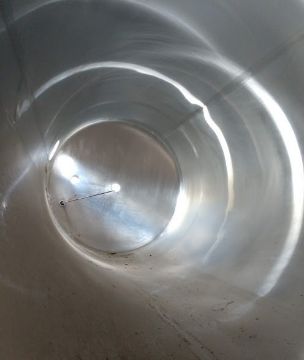 DCI 1,000 Gal. S/S Insulated Vertical Agitated Silo, Unit has Side Bottom Agitation, Unit Measures 53" Dia. x 144" H, Overall Height with Legsis 14 ft., Side Bottom Manway, Ladder with Top Sightglass, This vessel was last used in the dairy industry and remains in excellent condition, Unit will Need to Ship Via Flatbed (Loading Fee $500) (Located Darlington, WI)