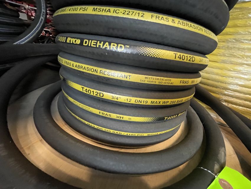 RYCO T4000 DIEHARD HYDRAULIC HOSE, FRAS AND ABRASION RESISTANT 3/4" 4100psi (ALL PURCHASES MUST BE PAID FOR AND REMOVED BY 5/4/22) (ALL ITEMS MUST BE REMOVED BY THE PURCHASERS ON OR BEFORE 4:00 PM MAY 4TH, 2022. ANY ITEMS THAT REMAIN ONSITE AFTER 4:00 PM MAY 4TH, 2022 WILL BE ABANDONED NO REFUNDS WILL BE MADE TO THE PURCHASERS)