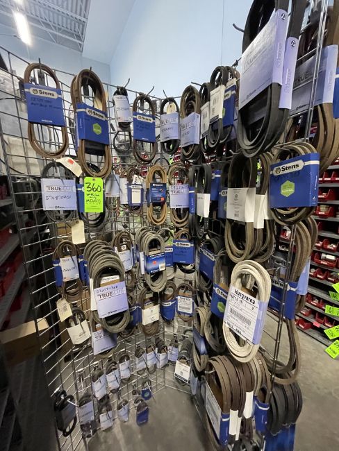 ASSORTED V-BELTS BY TURBLUE, HUSQVARNA, STENS AND OTHERS (ALL PURCHASES MUST BE PAID FOR AND REMOVED BY 5/4/22) (ALL ITEMS MUST BE REMOVED BY THE PURCHASERS ON OR BEFORE 4:00 PM MAY 4TH, 2022. ANY ITEMS THAT REMAIN ONSITE AFTER 4:00 PM MAY 4TH, 2022 WILL BE ABANDONED NO REFUNDS WILL BE MADE TO THE PURCHASERS)