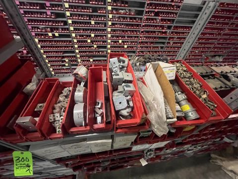 ASSORTED, BOLTS, CLAMPS, HARDWARE, ALUMINUM POWERTITE, POWER OUTLETS, ETC (ALL PURCHASES MUST BE PAID FOR AND REMOVED BY 5/4/22) (ALL ITEMS MUST BE REMOVED BY THE PURCHASERS ON OR BEFORE 4:00 PM MAY 4TH, 2022. ANY ITEMS THAT REMAIN ONSITE AFTER 4:00 PM MAY 4TH, 2022 WILL BE ABANDONED NO REFUNDS WILL BE MADE TO THE PURCHASERS)