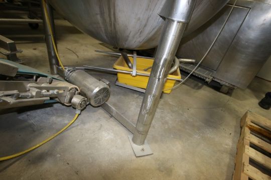 Lee 300 Gal. S/S Kettle, M/N 300 D5T, S/N B1738-A, Nat'L BD #: 3699, Rated 125 PSI Jacket, Overall Height (Agitator to Ground): Aprox. 8 ft. 4" Tall, Mounted on (3) S/S Legs with S/S Hinge Lids (HANDLING, LOADING, & SITE MANAGEMENT FEE: $500.00 USD--MUST PICK UP JUNE 2ND & JUNE 3RD; MUST HAVE DOCK LEVEL TRUCK) (LOCATED IN PLOVER, WI)