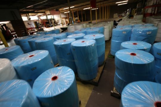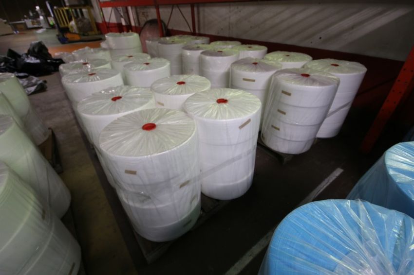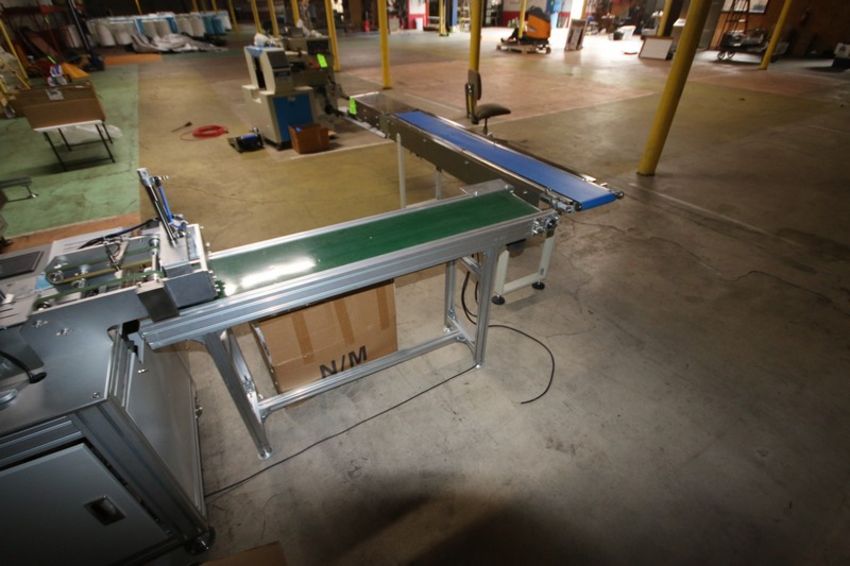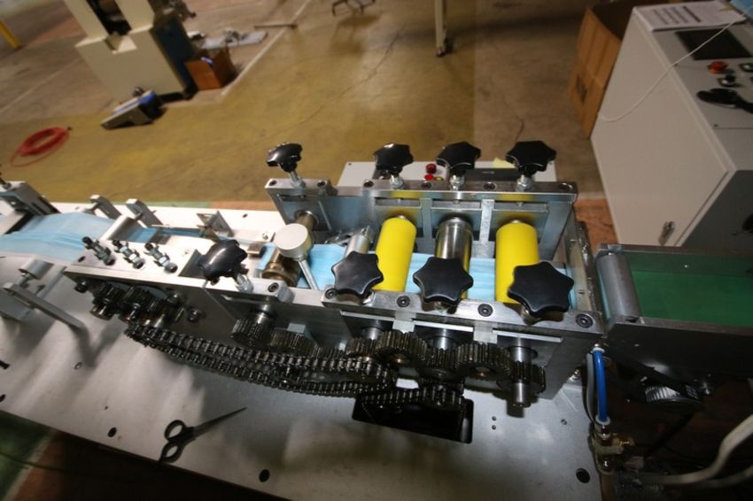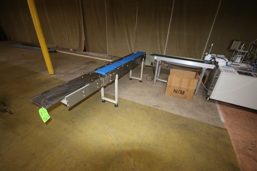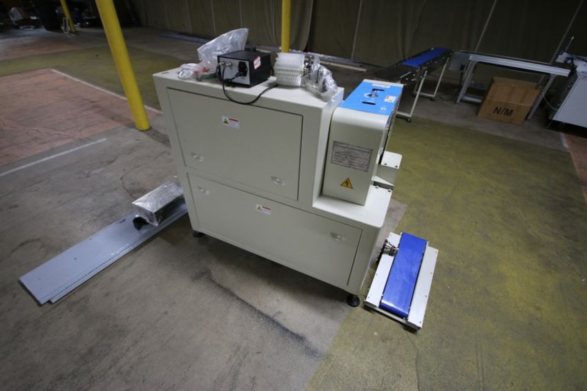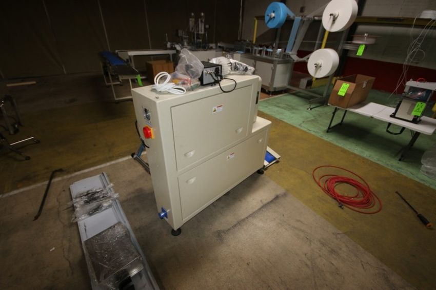 Ultra-Sonic Mask Manufacturing Line, Includes Mask Weave Machine, Nose Bridge & Ear Loop Machine, with (2) Straight Sections of Conveyor, with Aprox. 7” W Belt, Includes Small Table Ultra-Sonic Welder, M/N DS-1BYCT10, S/N 22013471, 110 Volt, Includes Automatic Multi-Functional Pillow Packaging Machine, M/N 320F, Speed 200 Pack/Min., Weight 500 Kg, Mounted on Frame (NOTE: Used to Fix Masks if Machine Has Miss Fire), Includes (10) Pallets of NEW 100% Virgin PP Rolls for Mask Production, GSM: 25 g/m2, Color: White, Includes (16) Pallets of NEW 100% Virgin PP Rolls for Mask Production, GSM: 25 g/m2, Color: Blue, with (5) Rolls of White, Includes (23) Pallets of NEW 100% Virgin PP Rolls for Mask Production, GSM: 25 g/m2, Color: White, Includes (6) Pallets of NEW N/M Nose Bridges and Ear Loops for Mask Production (NOTE: Enought Material to Manuf. 4,000,000 Masks!)(LOCATED IN WOONSOCKET, RI)
