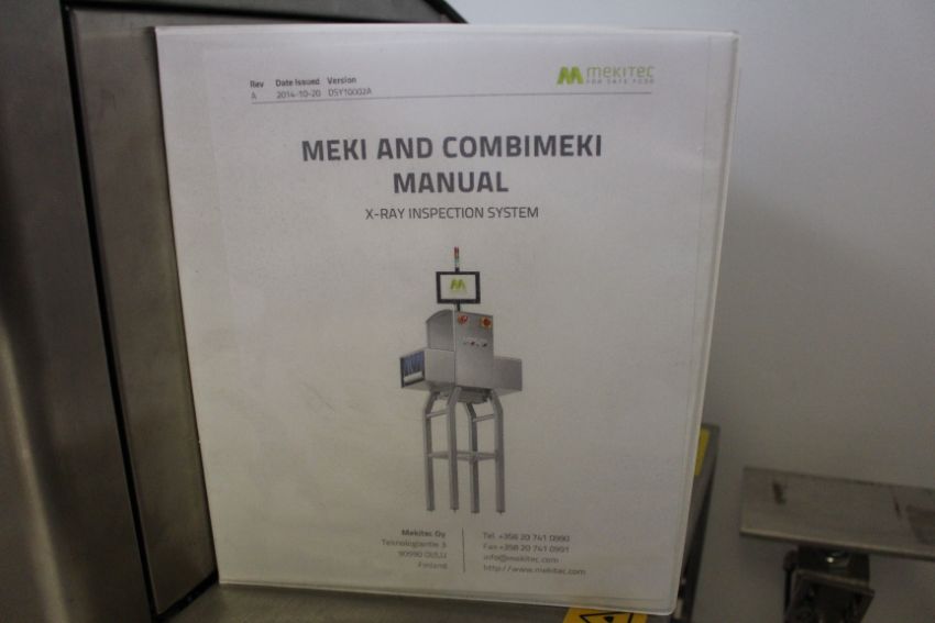 2014 MEKITEC X-RAY, MODEL MEKI D4 1200, S/N , 0.44MM AQU256 DETECTOR, 1200MM (3’11”) BELT CONVEYOR, TYPICAL DETECTION 1.5 MM FERROUS AND NON-FERROUS, 300 SERIES NONMAGNETIC S/S (1.5MM), INCLUDES PUSH ARM REJECTION STATION WITH EXTRA 480MM (19”) CONVEYOR, PREVIOUSLY RUNNING 24OZ AND 8OZ PACKAGES OF CHOCOLATE AND PRETZEL PRODUCTS, APPROX. COST IN 2016 $40,000