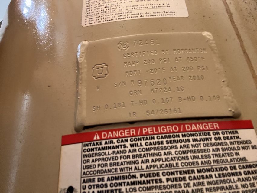 INGERSOL RAND RECIPROCATING AIR COMPRESSOR, MODEL TS4N5, S/N 1011010276, 5 HP, 3450 RPM, COMPRESSOR HEAD MODEL TS-5, S/N B074353