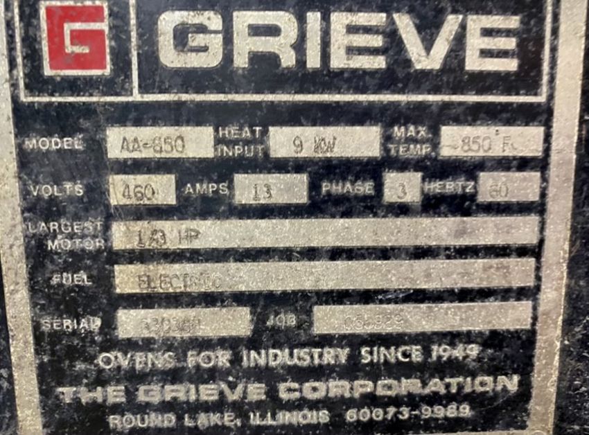 Grieve Oven, M/N AA-850, with 1/3 hp Motor, 460 Volts, 3 Phase (LOCATED IN BLAIRSVILLE, PA)