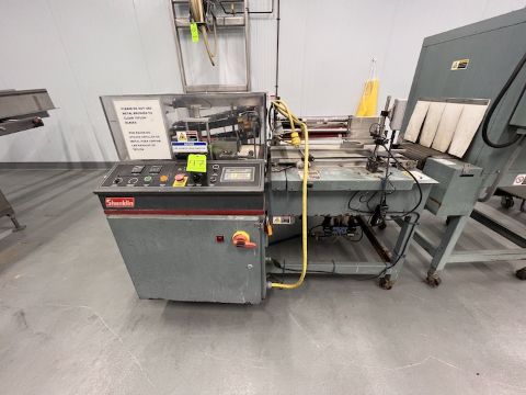 SHANKLIN SHRINK WRAPPER, MODEL A26A, S/N A07008-0, WITH SHANKLING SHRINK TUNNEL, MODEL T6H, S/N T08214-01, APERTURE APPROX. 11 IN L X 18 IN W, INCLUDES SALVAGE WINDER