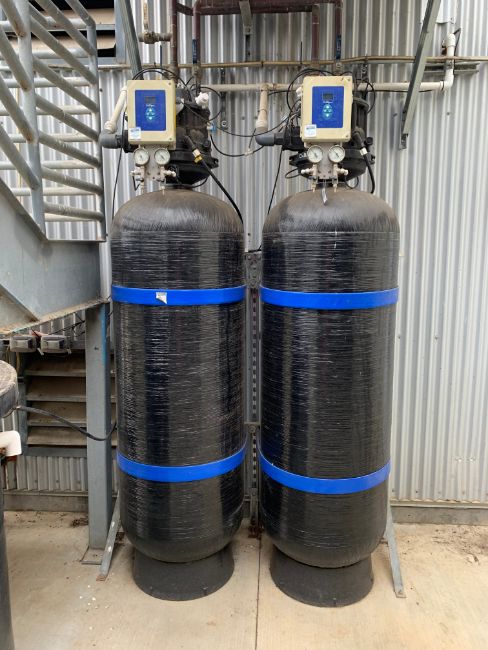 (2) WATER SOFTENING TANKS WITH CULLIGAN CONTROLS