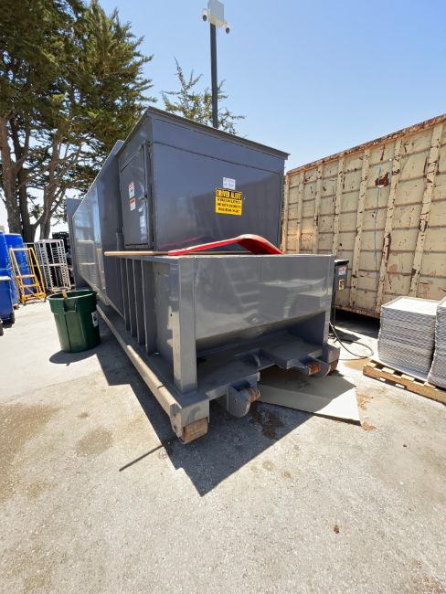 2021 RESOURCE EQUIPMENT COMPANY TRASH COMPACTOR, EQUIPPED WITH SPECIAL HIGH TORQUE INTERMITTENT DUTY MOTOR, NOMINALLY RATED AT 480 V, 10 HP, WITH HYDRAULIC POWER PACK