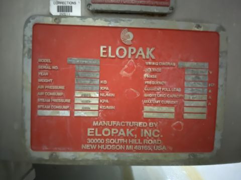 EloPak Inc. Filler, M/N Pure Pak P S20, S/N 70029, 220 Volts, 3 Phase (LOCATED IN SAN BENARDINO, CA)(RIGGING, LOADING, & SITE MANAGEMENT FEE: $2,000.00 USD)