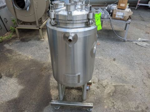 Qty (1) A+B Process Jacketed Vertical Stainless Steel Pressure Tank or Reactor 20 Gallon - Jacketed 20 gallon Pressure Tank / Reactor - Electroplolished Interior - Internal dims: 16'D x 26' high - Center bottom outlet - 1.5' sanitary connection - Internal ratings: MAWP 40 psi @ 338*F MAEWP 15 psi @ 338*F MDMT 40 psi @ -20*F - Jacket Ratings MAWP 100 psi @ 338*F MDMT 100 psi @ -20*F, Model , S/N 60568301