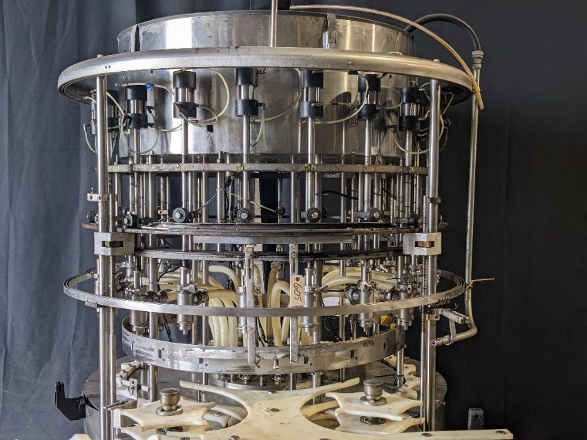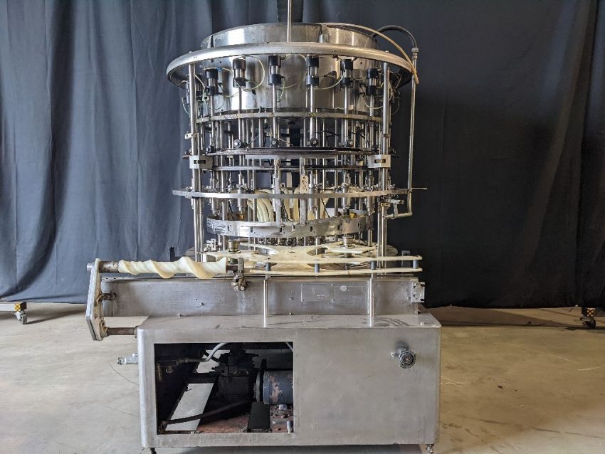 Qty (1) US Bottlers 24 Valve Filler - Heavy Duty Stainless Steel Construction- 8.5" Valve Centers - Left to Right Machine - All Stainless Steel Enclosure - 4-1/2' Tabletop Conveyor Channel , Model , S/N