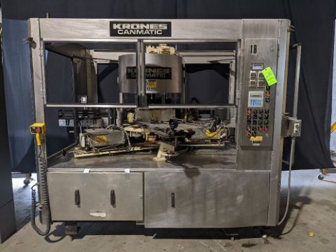 Krones 12 Head Rotary Hot Melt Cut and Stack Labeler - Krones Model Canmatic Rotary Labeler - 12 Head / Station Hot melt glue rotary labeler. - 12 Head Turret with 4-1/2” Tables on 7-1/2' centers - Allen Bradley Controls - Full Polycarbonate enclosure with safety interlocks - 4 Zone Glue Temperature Controls - Conveyor Length: 136” - Infeed Star Diameter: 19” - Infeed Star Number of Pockets: 8 - Discharge Star Diameter: 19” - Discharge Star Number of Pockets: 8” - 480V / 3 / 60 hz. - Machine Overall Dimensions: 100” L x 74” W x 90” H