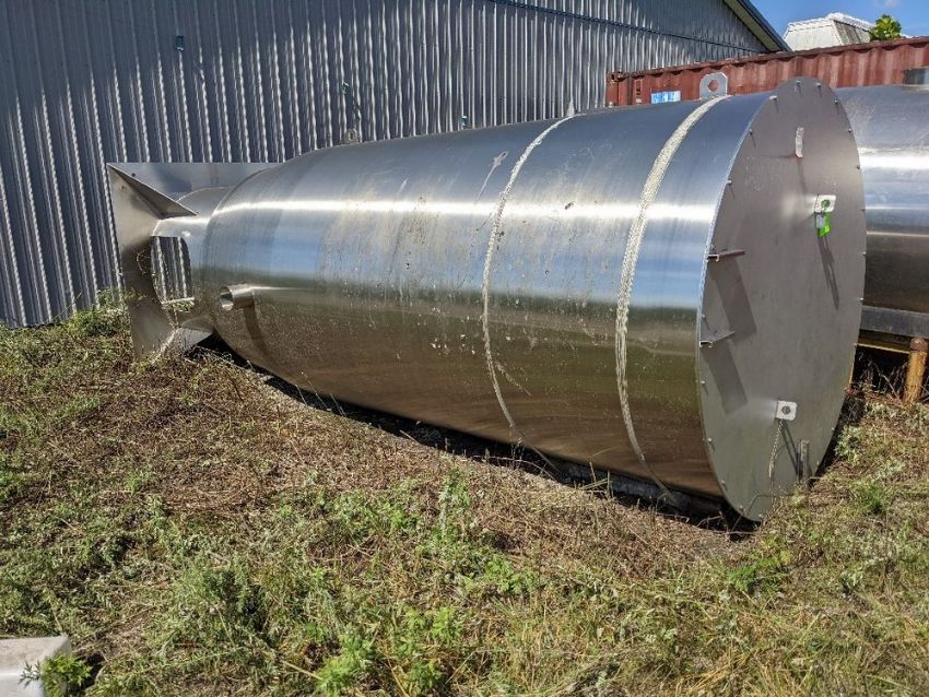 Qty (1) Single Wall Vertical Insulated Stainless Steel Tank 4000 Gallon - Approximately 4000 gallons - 8' diameter x 17' tall. . - Straight Wall Height: 127' - Coned Wall Height: 30' - Two tri clamp inlets, one 6' (lower side wall location on tank) and the other 3' ( higher side wall location). - 4' tri clamp center bottom outlet., Model , S/N