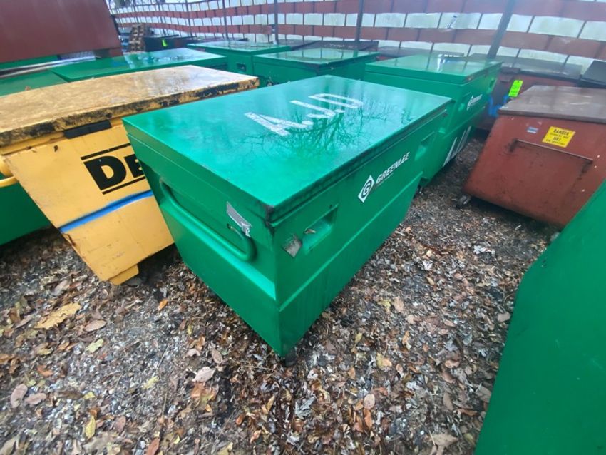 Greenlee Gang Box, with Hinge Lid, Overall Dims.: Aprox. 50” L x 32” W x 34” H, Mounted on Wheels (LOCATED IN MONROEVILLE, PA)(RIGGING, LOADING, & SITE MANAGEMENT FEE: $50.00 USD)