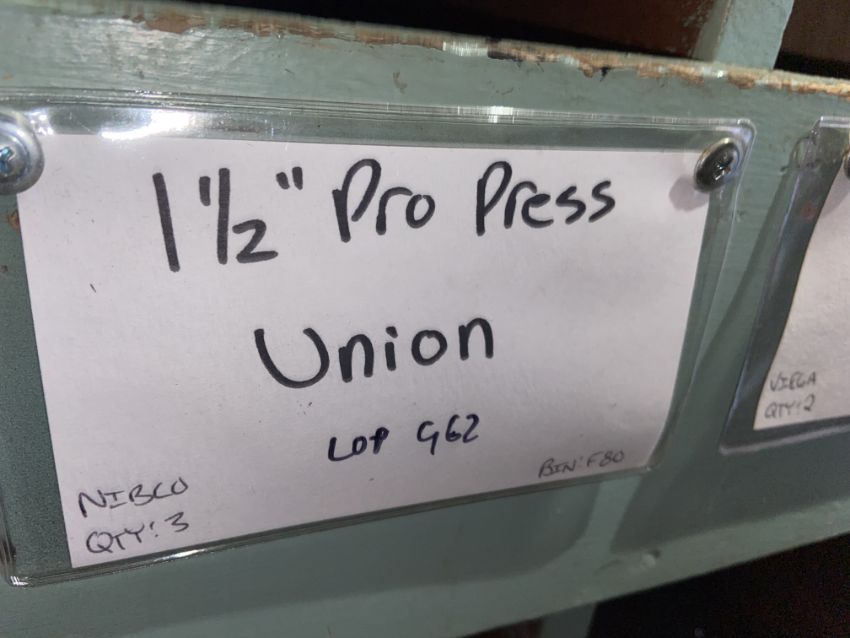 VIEGA(6) CELLO(2) 1 1/2” pro press stop coupling (Bin:F79); (3) NIBCO 1 1/2” pro press union (Bin:F80); VIEGA (2) 1 1/2” pro press union (Bin:F81) (LOCATED IN MONROEVILLE, PA)