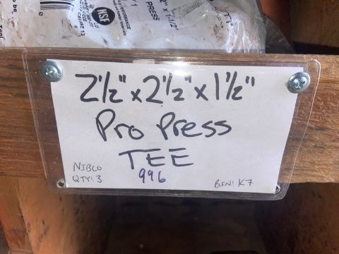 (2) Copper 2-1/2" x 1-1/2" Pro Press Fitting Reducer (Bin: K8); (3) Copper 2-1/2" x 2-1/2" x 1-1/2" Pro Tee (Bin: K7); (1) Copper 2-1/2" X 2-1/2" 3/4" Pro Tee (Bin: K6); (1) Copper 2-1/2" x 2-1/2" x 3/4" Pro Press Tee (LOCATED IN MONROEVILLE, PA)