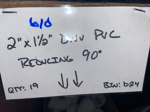 (19) 2”x1 1/2” DWV PVC Reducing 90’ (Bin:B24); Includes (1) 6” SDR 45’ (Bin:24)(LOCATED IN MONROEVILLE, PA)