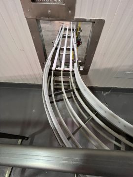 S/S CONVEYOR, APPROX. 360 IN L X 15 IN W, STERLING ALL S/S WASHDOWN DRIVE MOTOR (RIGGING & SIMPLE LOADING FEE $350.00) (NOTE: DOES NOT INCLUDE SKIDDING OR PACKAGING WILL REQUIRE ADDITIONAL FEE)