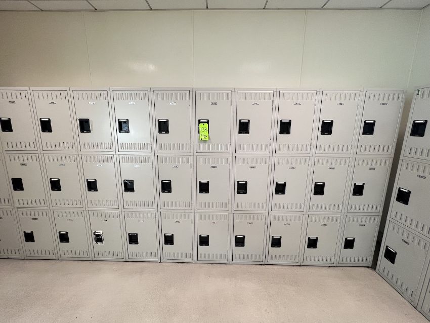 (3) SECTIONS OF LOCKERS WITH APPROX. (63) INDIVIDUAL LOCKERS (RIGGING & SIMPLE LOADING FEE $300.00) (NOTE: DOES NOT INCLUDE SKIDDING OR PACKAGING WILL REQUIRE ADDITIONAL FEE)