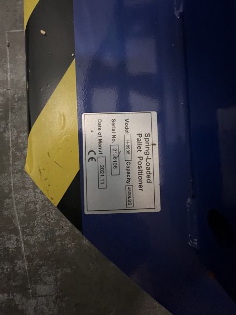 2021 ULINE SPRING LOADED PALLET POSITIONER, MODEL H-8935, 21J6106, 4,500 LBS CAPACITY (RIGGING & SIMPLE LOADING FEE $25.00) (NOTE: DOES NOT INCLUDE SKIDDING OR PACKAGING WILL REQUIRE ADDITIONAL FEE)