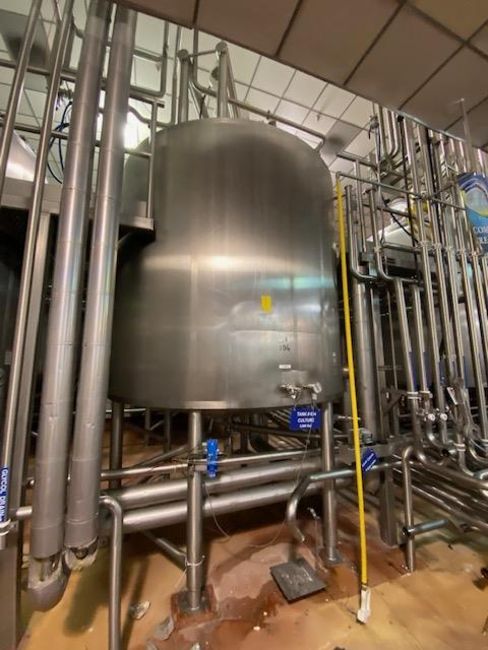 APV 3,000 Gal. S/S Jacketed Culture Products Tank, S/N K-0348, Jacket MAWP 75 PSI @ 350 F, Jacket MDMT -20 F @ 75 PSI, with Dome Top with Cone Bottom, with Side & Bottom Scrape S/S Agitation, with Single S/S CIP Spray Ball, Top Mounted Agitation Motor, Mounted on S/S Legs (Tank#604)(LOCATED IN LOS ANGELES, CA) (RIGGING, LOADING, & SITE MANAGEMENT FEE: $5,750.00 USD)(SUBJECT TO BULK BID FOR LOT 109)