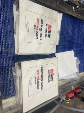 Delkor Spot Packer,S/N SP-2111, with Allen-Bradley Micro-Logix 1500 PLC, with Aprox. 23-1/2" W Plastic Interlock Belt, with Boxes of Spare Parts Including Pneumatics, Mounted on S/S Frame (INV#88957) (Located @ the MDG Auction Showroom 2.0 in Monroeville, PA)(Handling, Loading & Site Management Fee: $400.00 USD)