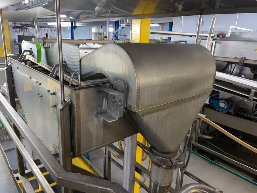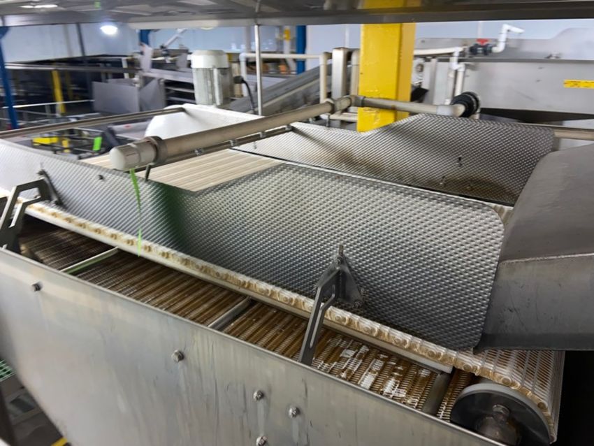 S/S Blower Water Fall Transfer Conveyor, with Aprox. 29” W Belt, with Drive & S/S Cover (LOCATED IN ATWATER, CA)(RIGGING, LOADING, & SITE MANAGEMENT FEE: $550.00 USD) (SUBJECT TO BULK BID--LOT 89)