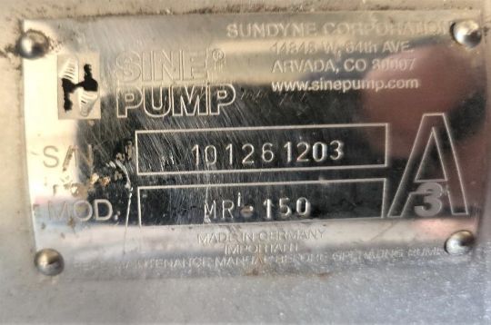 Watson-Marlow MasoSine S/S Sanitary Process Pump, Model MR-150, S/N 101261203. System is complete with Drive and Spare S/S Rotor, Mounted on S/S Frame, System is Capable of Handling Product Up to 2" Dia., Capable of Pumping 282 Gallons per minute, Almost Twice the Capacity of a Model 135, 4" Tri-Clamp Inlet/Outlet, PDF File with Complete Parts and Installation Manual Included. This system was last used in the food industry and remains in excellent condition -- (Crating and Loading Fee $300) (Located Hortonville, WI)