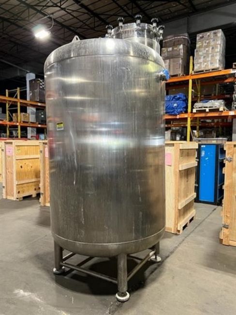 Fronhofer 25BBL (775 gallon) S/S Brite Tank, S/N 025B-002 - 119" tall x 57-1/2" diameter, CIP ball & arm, 3" front sight glass, 12" diameter top port, 17-1/2"" x 13-1/2 " oval front cleaning/inspection manhole, Dish bottom, 1-1/2" center bottom discharge, Thermometer pressure gauge, 10" diameter mesh basket for adding solids (removable), Adjustable leveling feet, Manufactured in 2017 - used for only 2 years (Stock #83654) (No Charge for Loading) (Located Edison, NJ)