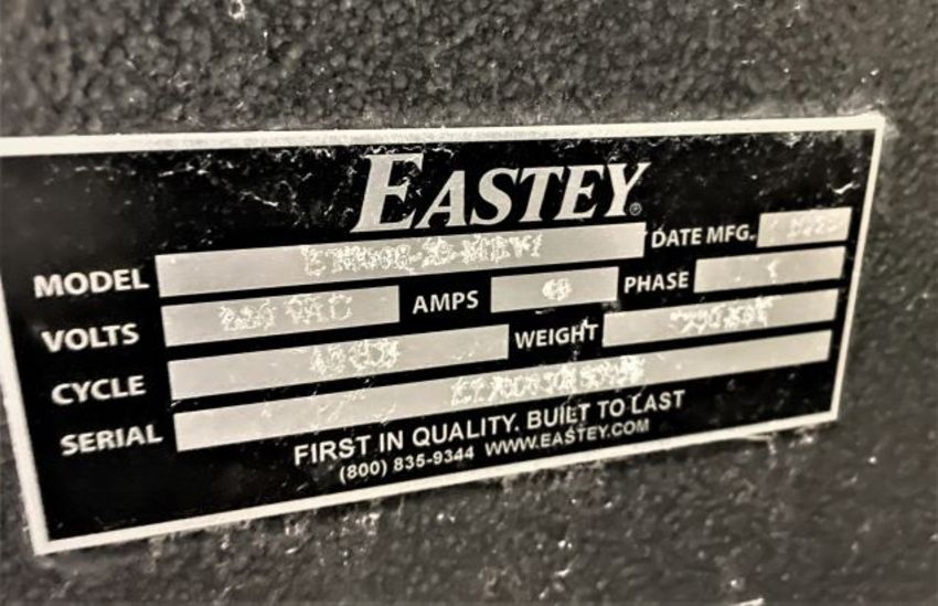 EasteyHeat Shrink Tunnel, Model ET1608-30-MPV-1, S/N ET1608 301-5090. Used Shink Tunnel with 4-Directional Air Flow Provides Positive Shirnking, Variable Velocity Control, Lockign Casters, Variable Speed Conveyor, Roller Conveyor, Three Heater Banks, Chamber Dimensions 30 L x 16" W x 08" H. Designed to seal most polyolefin, polyethylene and PVC Shrink Films, Sealed Bearings (not Bushings) on Drive and Idler Shifts; Adjustable Temperature Controls; Delayed Cool Down and Over Temperature Protection, Fold Down Electrical Control Panel for Easy Maintenance; Conveyor Speed Up o 67 ft. per minute; Heavy Duty Casters for Transportation within Plant Leveling Legs Provide Sturdy Base Once in Place; Tunnel Opening Height 8"; Effective Tunnel Opening Width: 16"; Tunnel Length 30"; Number of Heating Chambers 1; Conveyor Belt Type Roller Conveyor; Maximum Belt Speed 67 ft. per minute; Voltage 220; Electrical Phase Single Phase; Hertz 60 Hz; Last used in the used food industry and remains in excellent working condition, System was just removed from a cheese mfg. and remains in excellent working condition (Loading and Crating Fee $400) (Located Hortonville, WI)