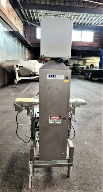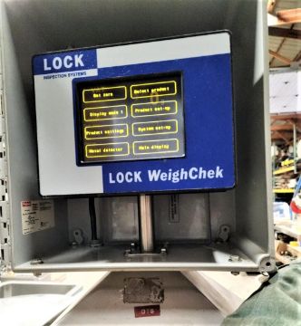 Lock WeighCheck S/S Checkweigher, Model WeighChek, Last Calibrated in 2021 with 12" Wide Belt, Touchpad Controls, Air Blast Reject, S/S Frame - Unit last used in the food industry and remains in excellent working condition (Loading and Crating Fee $400) (Located Hortonville, WI)