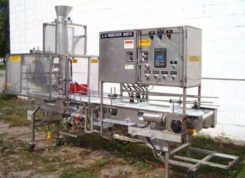Food Process Systems S/S Sanitary Box Filler, Model 6000, S/N 145702 with Allen Bradley Ultra 3000 Controllers with PanelView 300 Screen, A-B Servo Motor, Aprox. 12" W x 110" L Intralox Box Filling Conveyor System, Mfg. by Food Process Systems, Lodi, WI; White Flighted Intralox Belt Set at 36" Work Height, S/S Sanitary Construction, See Through Plastic Feed Chute Over Belt, Has Push Off Reject features. This was a stand alone system used to fill boxes of appetizers. Unit was feed from an Ishida Scale, Used in Excellent Working Conditon, Should ship via flatbed but could be crated for additional cost. Please inquire for shipping rates (Loading Fee $500) (Located Hortonville, WI)